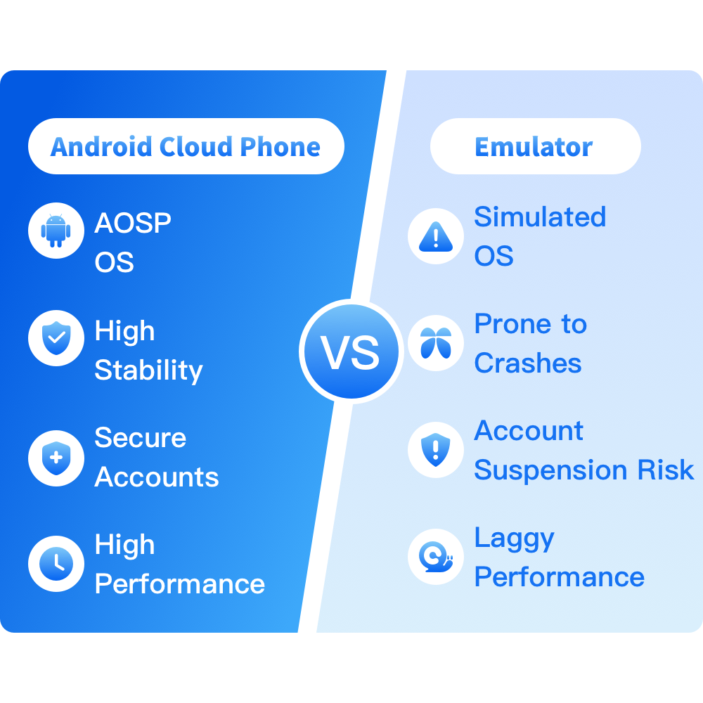 Android Cloud Phones provide powerful advantages for gamers, marketers, and developers. Compared to traditional devices or emulators, cloud phones deliver higher stability, better performance, and lower account risk.